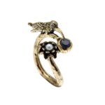 Bracciale in ottone dorato realizzato a mano, presenta al centro raffigura un colibrì dagli occhi svarovski che poggia il becco su un fiore dal pistillo di zaffiro. Un gioiello elegante creato secondo la tradizione artigiana. Dimensione centrale H 0,5cm L 3,4cm
