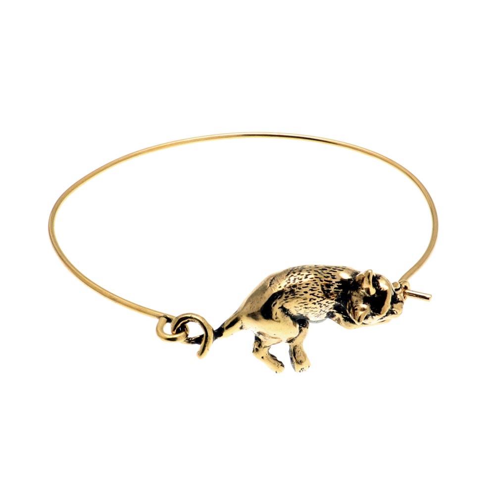 Bracciale rigido realizzato a mano in ottone dorato. Decorazione con Gatto.