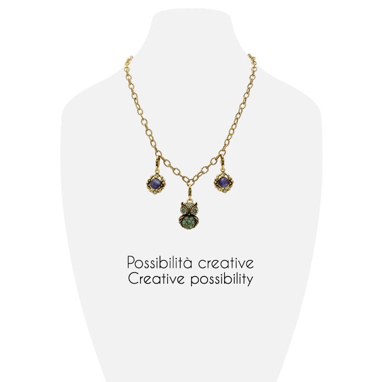Collana a catena di piccoli rollò lavorati in ottone bagnato in oro che funge da base per appendere tutti i charms. Bigiotteria artigianale fatta a mano. – Scegliere la finitura – Catena L 45cm. I charms da appendere possono essere scelti anteponendo al codice la lettera “P”